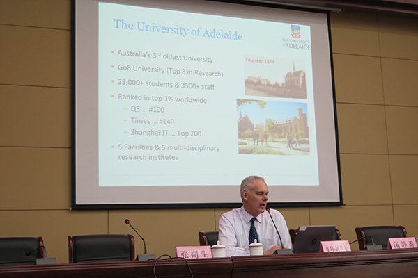 Peter Ashman教授对澳大利亚阿德莱德大学的办学历史、该校化学工程学院的专业构成及课程设置进行了详细介绍,并就教师交流互访、学生赴澳留学相关问题与师生们进行了互动,现场气氛热烈。