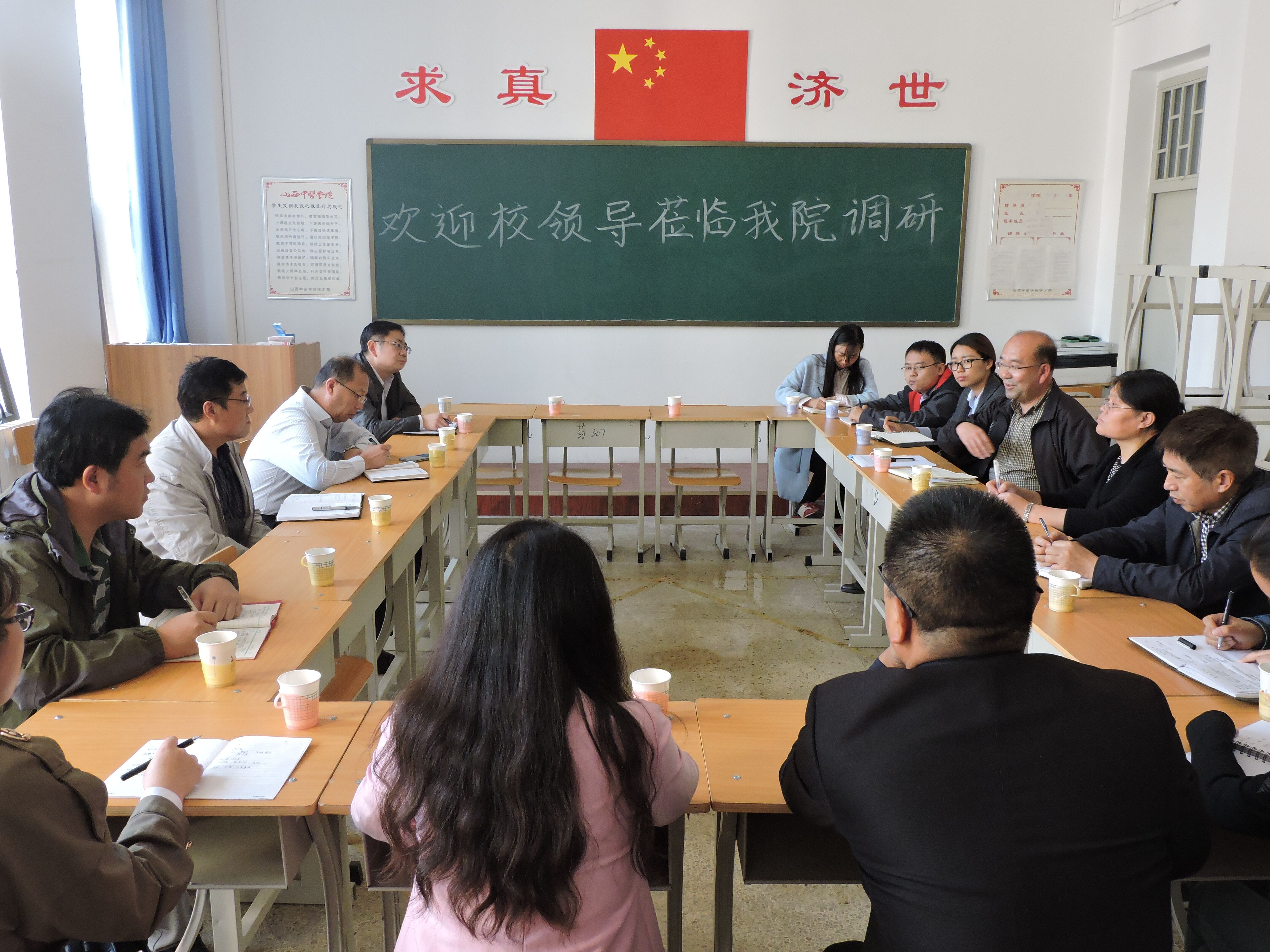 王新塘副校长在听取学院工作汇报后,对学院管理、建设及近年来取得的成绩予以肯定,并勉励大家继续努力,克服困难,争取取得更大的成绩。同时就学院存在的有关困难,广泛听取学院领导及教师的意见建议,提出了富有建设性的解决方案。对于一些学生生活问题,王新塘副校长高度重视,相关部门领导表示会尽快解决。