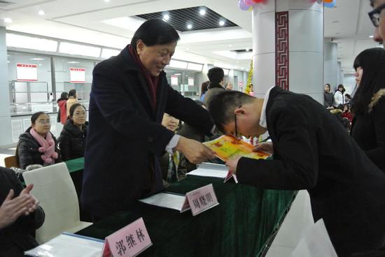 在喜迎元旦佳节来临之际,中药学院对2013年下半学期陆续开展的“2013级中药学院文体活动”、“中药学院大学学习生涯规划”、“中药学院共建美好校园”征文大赛、“中药学院第三届翰墨书香染杏林读书心得交流会”、“中药学院读书心得”征文大赛等活动进行总结,为表彰奖励先进集体、先进个人,增强同学们的集体意识、团结意识,鼓励同学们积极参加学院的集体活动,增加学生干部工作的积极性,同时为了让学生能够迎接崭新的一年,让学生能够拥有一个平台去施展自己的才华,特此于12月30日在新校区餐厅二楼隆重举行“中药学院元旦联谊会暨表彰大会”。莅临本次大会的嘉宾有山西中医学院周晓明副校长、中医临床学院党总支黄安副书记、学生处张斌仁副处长、中药学院裴妙荣院长、中药学院党总支郭继林书记、中药学院党总支庞维荣副书记、中药学院学工办临时负责人李刚老师及中药学院2013级全体辅导员。