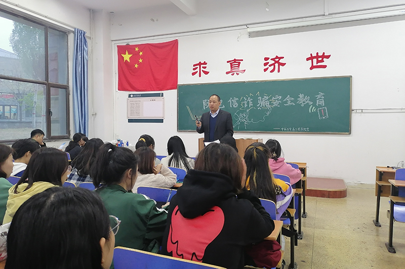 为进一步加强安全意识,消除安全隐患,pg国际电子网站于4月21日在药学楼110楼教室开展了“预防网络诈骗”专题讲座,学校保卫处处长贾晓斌主讲,pg国际电子网站分团委书记毛文英出席,2020级全体心理委员以及部分学生参加。