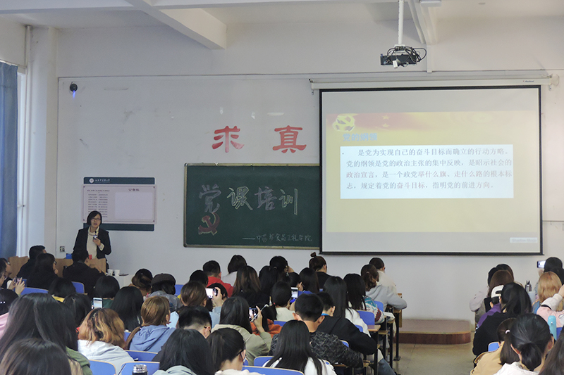 10月22日,pg国际电子网站在和剂书院甲座109教室举行本学年第一次专题党课培训。学院党委书记庞维荣为入党积极分子作题为“加强理论学习、提高政治素养”主题报告。全院135名学生入党积极分子及3名教师入党积极分子参加学习。