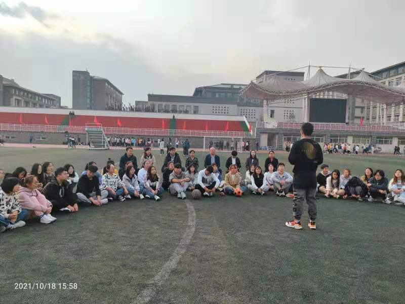 2021年10月18日,2020级药茶班在杏林体育场举行“走出教室、走下网络、走向操场”主题班会,pg国际电子网站党委副书记梁峰岗出席,分团委全体专职辅导员参加,班会由药茶班辅导员孟喆主持。