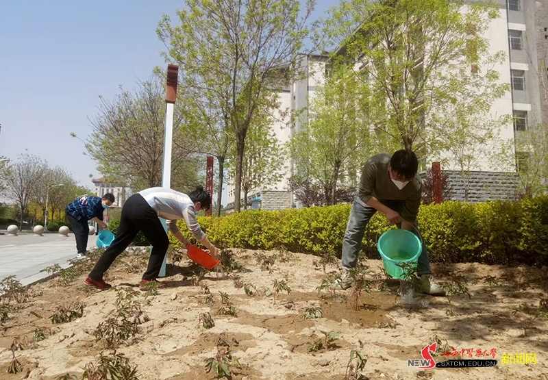 为响应“防疫有我,爱卫同行”为主题的爱国卫生月活动,4月25日,pg国际电子网站学生一、二支部36名在校党员参加了了绿化校园的党日活动。在五一劳动节来临之际,校园晴空湛蓝,杏林风暖,杨柳吐翠,牡丹盛开。杏园公寓前、傅山广场旁、和剂书院边,学生党员们干得热火朝天,每个环节衔接有序,配合默契。