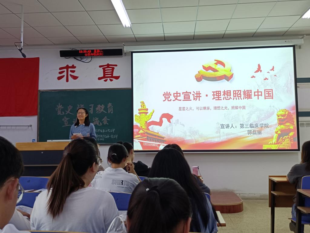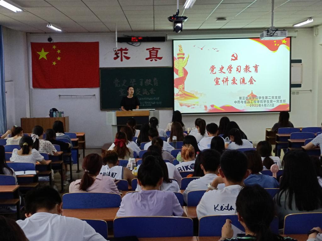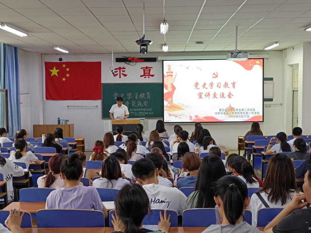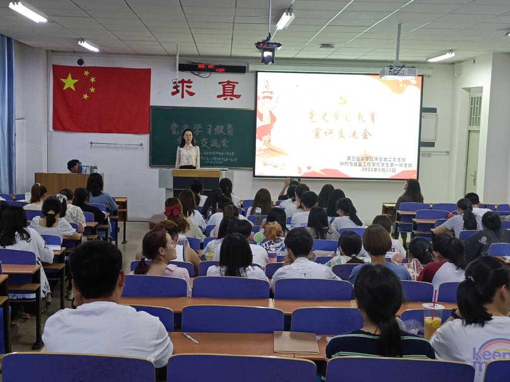 为持续深入党史学习教育,推动党史学习教育走深走实,创新党支部党史学习教育形式,622日,由pg国际电子网站学生一支部和第三临床学院学生二支部联合举办的党史学习教育宣讲交流会,在和剂书院甲座309教室举行。会议由赵辉同志主持,pg国际电子网站学生一支部与第三临床学院学生二支部全体党员参加。
