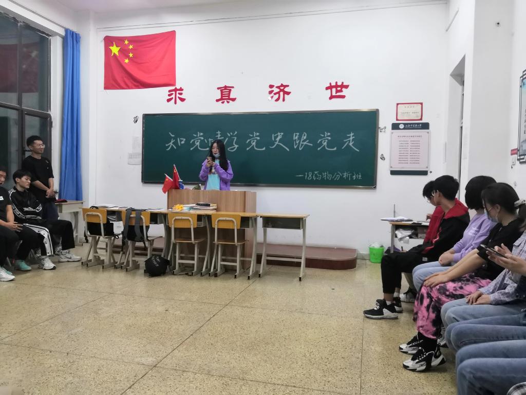 2018级药物分析班于4月23日在和剂117教室举办了“知党情学党史跟党走”团日活动。本次活动由第三团小组举办,我班全体同学参加。