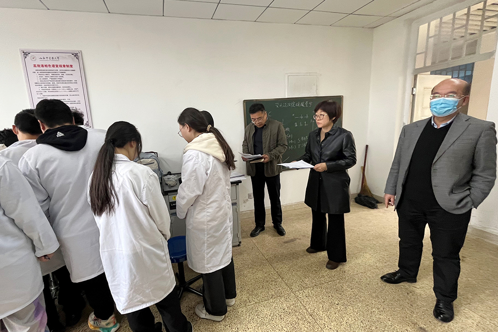 3月20日上午,pg国际电子网站党委书记庞维荣、院长张朔生、副院长秦楠对学院实验室进行现场检查。