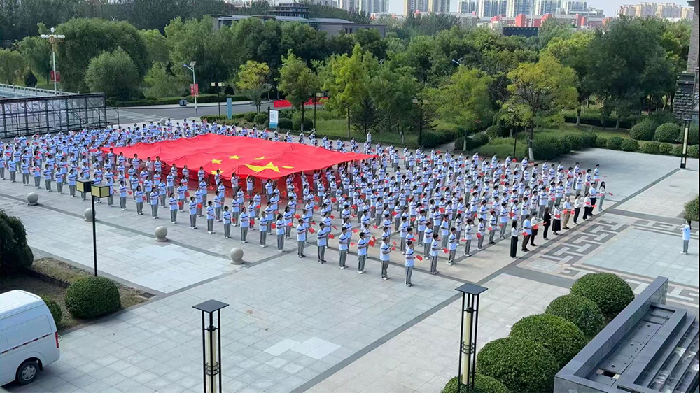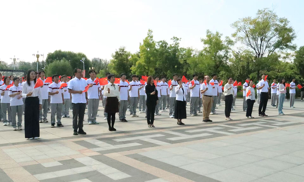 在集中观看阅兵直播后,全院师生在傅山广场共唱红歌《歌唱祖国》。学院党委书记赵瑞宝激情澎湃寄语同学们一要坚定理想信念,厚植家国情怀;二要锤炼专业本领,担当时代重任;三要磨炼意志,不畏艰难险阻;四要培养集体观念,严守纪律规矩。学生代表韩永超感慨阅兵式的盛大场面,回顾抗战历史的伤痛与先烈的英勇抗争,激励同学们铭记历史,以青春助力强国建设。师生高声共唱《歌唱祖国》,激昂的旋律在广场上空回荡,嘹亮的歌声传递着对祖国的无限热爱与祝福,现场氛围热烈而庄重,爱国之情在每个人心中激荡。