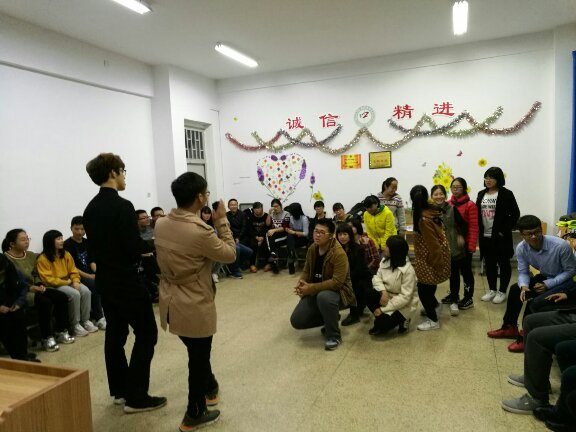 活动伊始,团辅人员赵飞龙先简单的进行了自我介绍,然后是姜阳同学简单的自我介绍。接着赵飞龙同学在游戏开始前先让同学把手机放了,之后开始玩游戏,大风吹与小风吹,输了的同学表演节目。然后玩儿了踩报纸游戏与围圈坐游戏,通过这些游戏,同学们学到了很多。赵飞龙同学让同学们站起来说一下自己通过游戏学到了什么,大多数同学都学到了团结、坚持、有毅力、信任等。活动快结束时,赵飞龙同学组织同学们冥想,让同学们放松,然后给每位同学都发了便利贴,让同学们写下自己在游戏所得。最后,赵飞龙同学宣布活动结束,然后采访了几位同学。