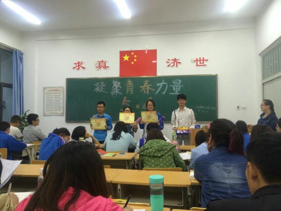 活动开始前,团支书首先介绍本次活动的意义。然后向获得本届"优秀共青团员"的同学颁发证书,并让他们和其他同学进行交流,谈谈自己对"五四精神"的认识。同学们一致认为继承和发扬五四精神,是我们作为大学生必须做的一件事,坚定团员青年跟党走中国特色社会主义道路的理想信念。活动最后,团支书和大家分享关于"五四精神"的小故事,引导青年团员朝气蓬勃,奋发进取的精神面貌。