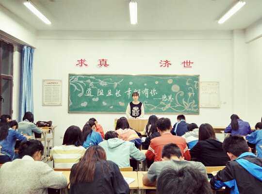 活动开始后,主持人请大家都闭上了眼睛,音乐缓缓的响起,伴随着的是四名同学对1-50岁时你的每个阶段对父母的话语,其中有父母的唠叨和你的叛逆。但随着自己慢慢的成长,终于有一天,她去世了,突然你想起了所有从来没有过的事,它们却像榔头痛击着你的心,亲情是人类永恒的话题,只要我们生活在世间,或者只要我们还活着,我们就离不开亲情。