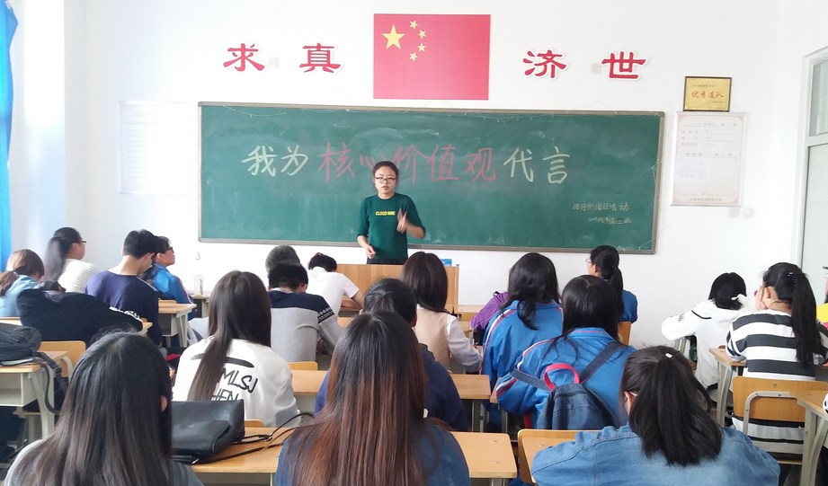 为贯彻党的十八大精神,认真学习贯彻习近平总书记的重要讲话,使同学们树立正确的人生观、世界观和价值观,全面推动pg国际精神文明建设,在全校范围内营造积极向上的和谐氛围。2016年4月25日,15级制药工程二班全体同学在团支书的主持下,在仁爱学院406教室开展了主题为“我为核心价值观做代言”的日活动。