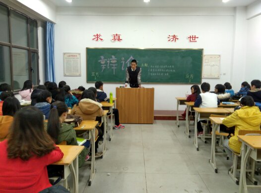 刚过完严寒的冬日,本应是温和的春日。但是校园中的大风还在无情的肆虐。为了增加同学们新的激情,15级食品三班于3月10日晚在护理楼411举行了一场激烈的辩论赛。