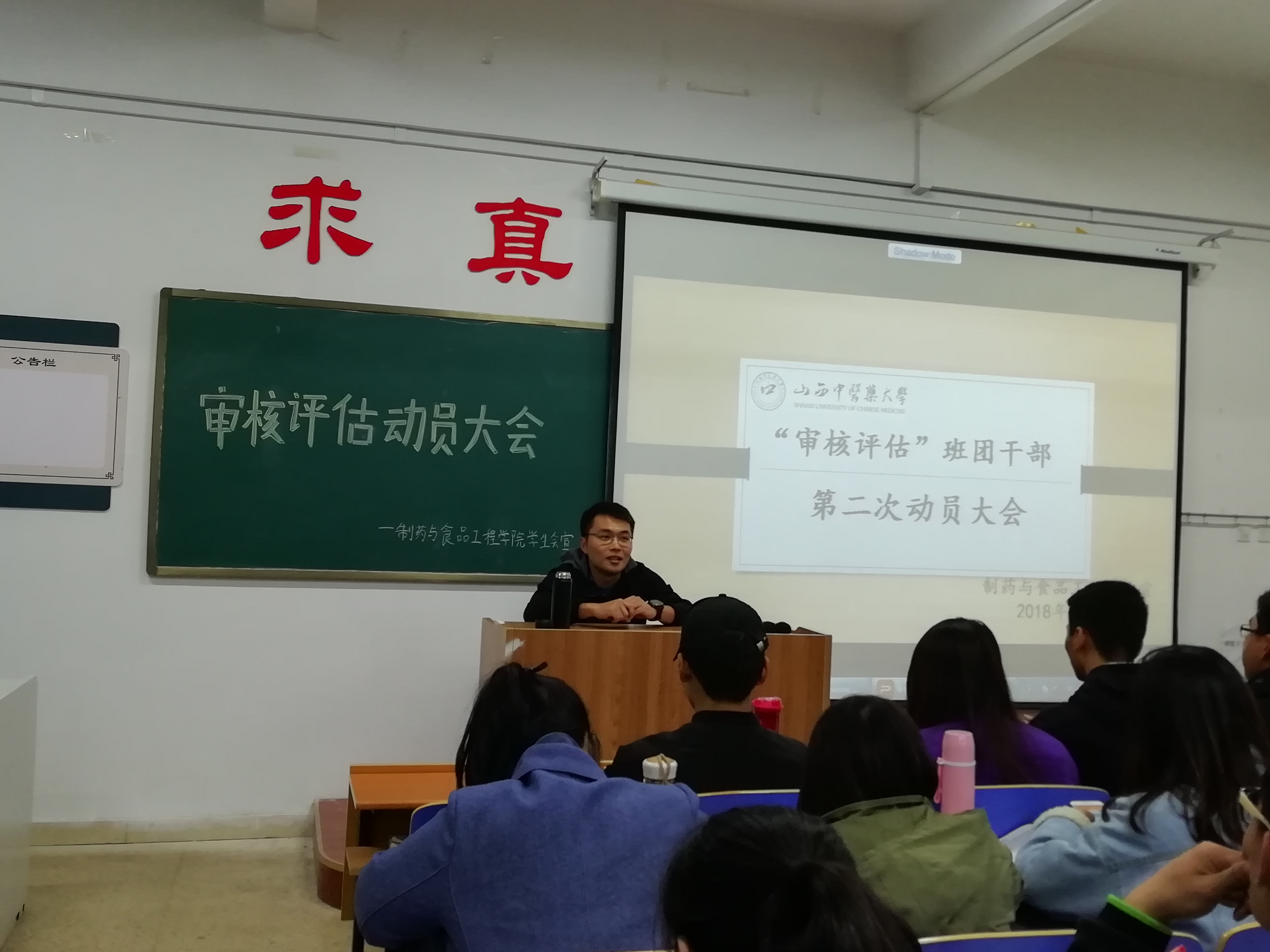 2018年10月22日晚九点,pg国际于和剂书院甲座210教室召开第二次应知应会动员大会。出席本次会议的有孟喆老师,学生会主席,各部门部长以及各班级班干部。本次会议主要由孟喆老师向参会人员讲解与审核评估有关的