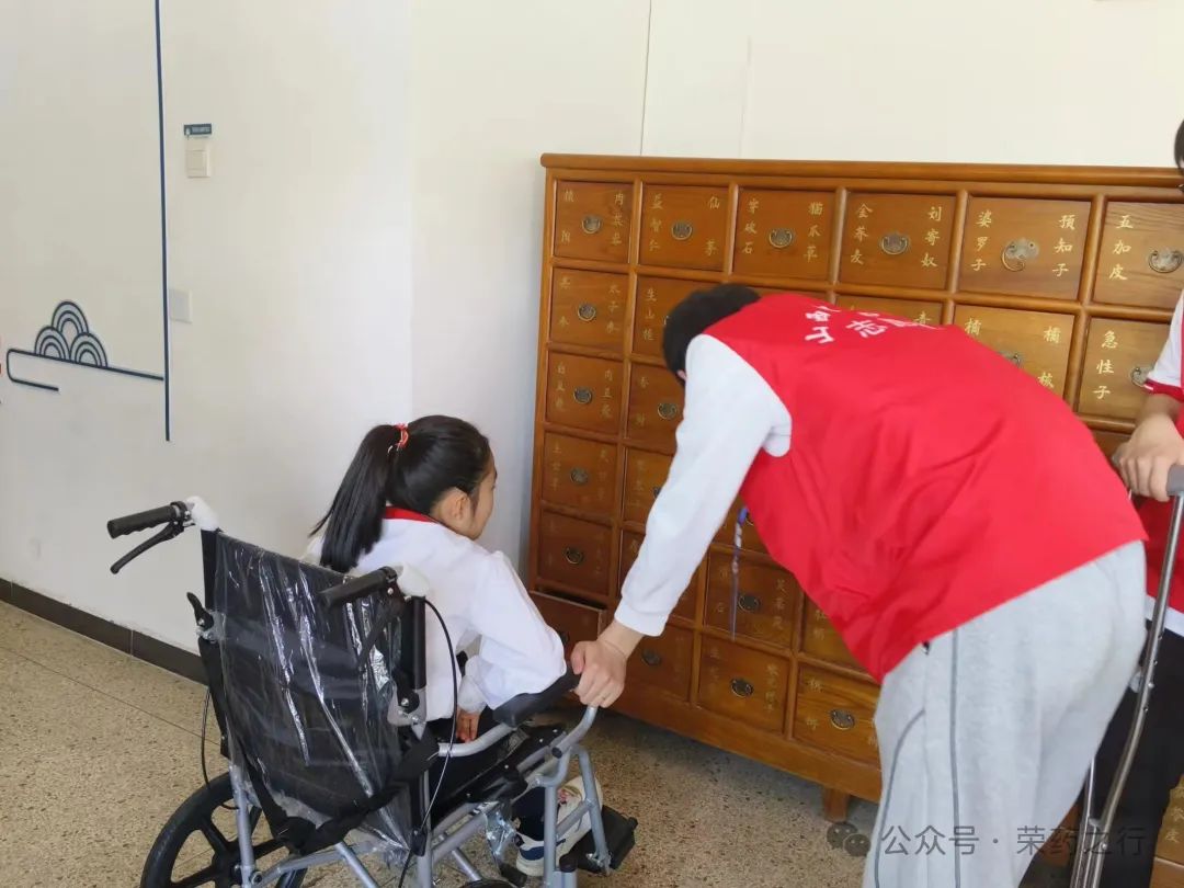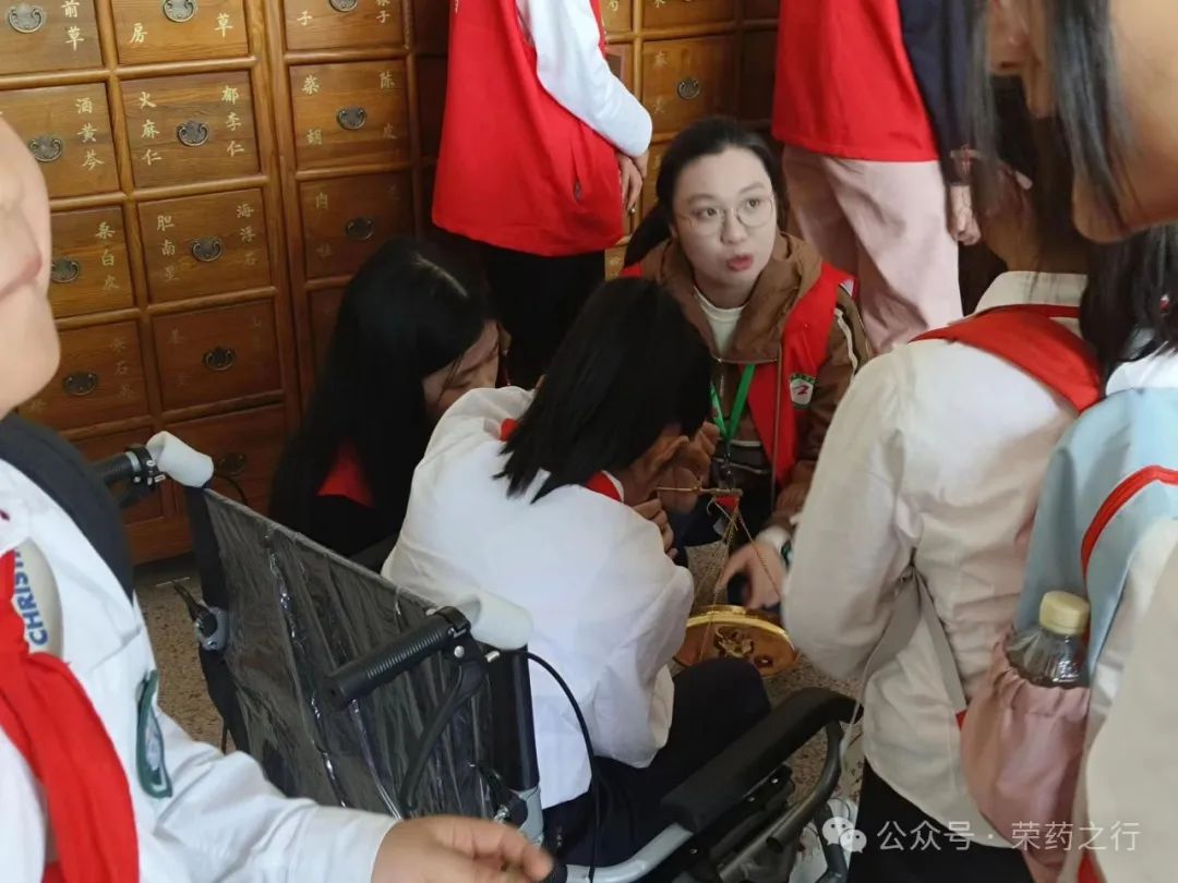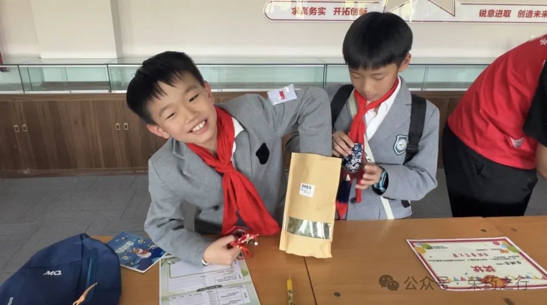 志愿者引导孩子们来到药柜前,开始了"识本草"的学习之旅。工作人员以专业而不失亲和的讲解,引导孩子们探索药材的名称、功效及用法,并巧妙融入称药实践,点燃了孩子们的好奇心和求知欲。不仅深化了孩子们对中医药的认知,更在他们心中播下了对中医药文化热爱的种子,为他们的成长之路注入了深厚的文化底蕴。