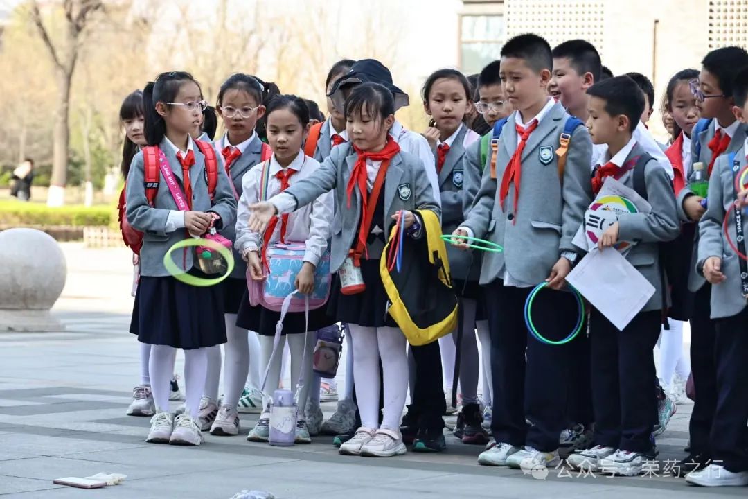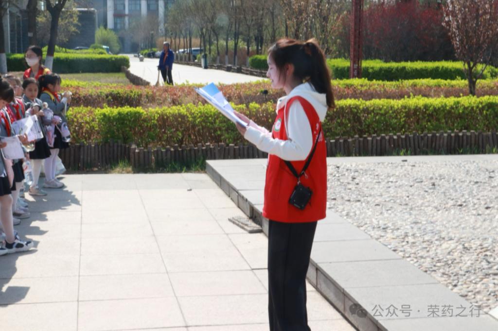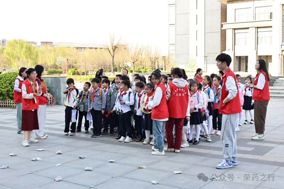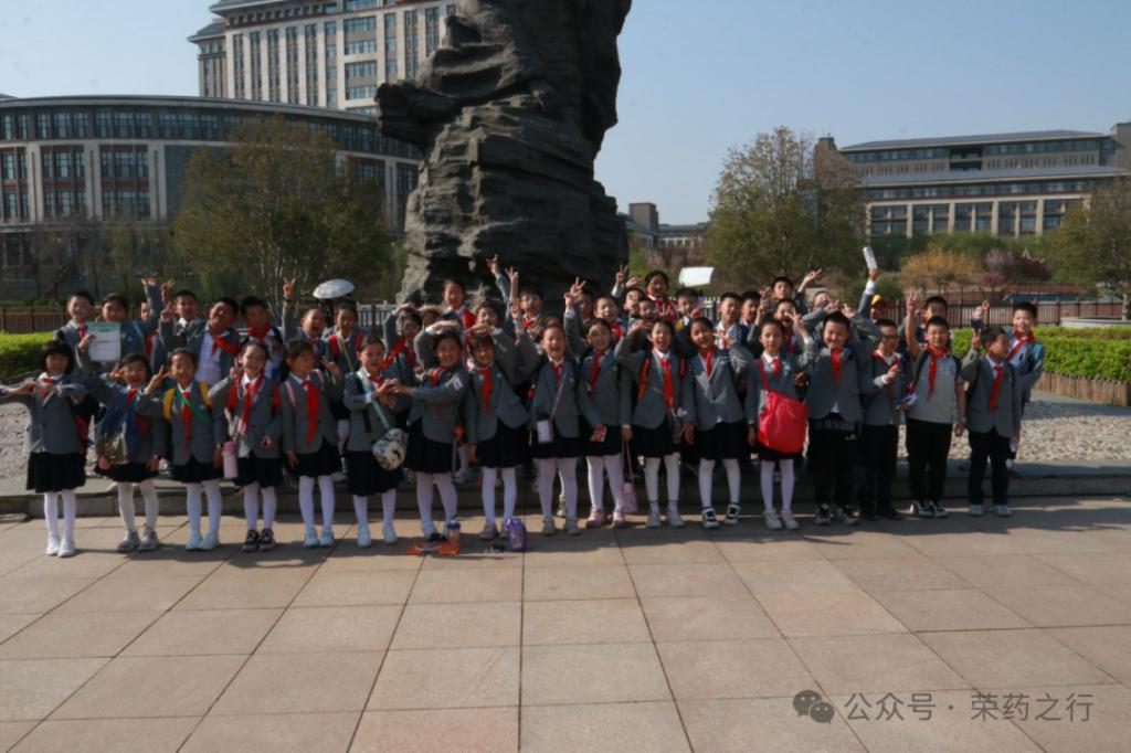 在校园中轻步前行,每一步都如同穿越一条沉淀着历史的故事长廊,每一步都蕴含着深厚的智慧。从岐黄门的古朴庄重,到求真桥的沉稳静谧,孩子们紧紧跟随着讲解员的步伐,沿着大医之道前行,他们在傅山相前驻足仰望,感受其历史的厚重和文化的瑰丽;在上池水边,他们静静地欣赏锦鲤的悠然自得,体会自然与生命的和谐共舞;图书馆门前,他们感受着知识的庄重与广博,探寻中医药文化的独特魅力;大医精诚的石碑下,他们沉思着阴阳八卦的玄妙与智慧;在和剂书院中,他们聆听着历史的回响,领悟着中医药学的博大精深。这一路的游览与学习,不仅让孩子们领略了中医药文化的深邃与智慧,更在轻松愉快的氛围中汲取了中医药理念,心灵在文化的熏陶中得以升华。