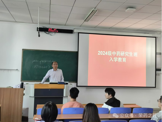 为使2024级硕士研究生新生更深刻的了解到pg国际研究生教育体系,进一步强化中医药文化自信,树立成长目标,实现在校期间的德智体美劳全面发展要求,2024年9月18日,pg国际电子网站于和剂甲座309教室开展了“入学教育”。此次会议由分管研究生工作的副院长裴科及学院党委副书记李刚主讲,24级中药研究生班全体成员参会。