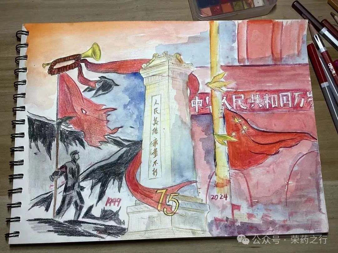 每一幅作品都承载着同学们对祖国深深的热爱和祝福,它们不仅仅是色彩与线条的组合,更是心灵与情感的倾诉,彰显了山中医学子对祖国的热忱。