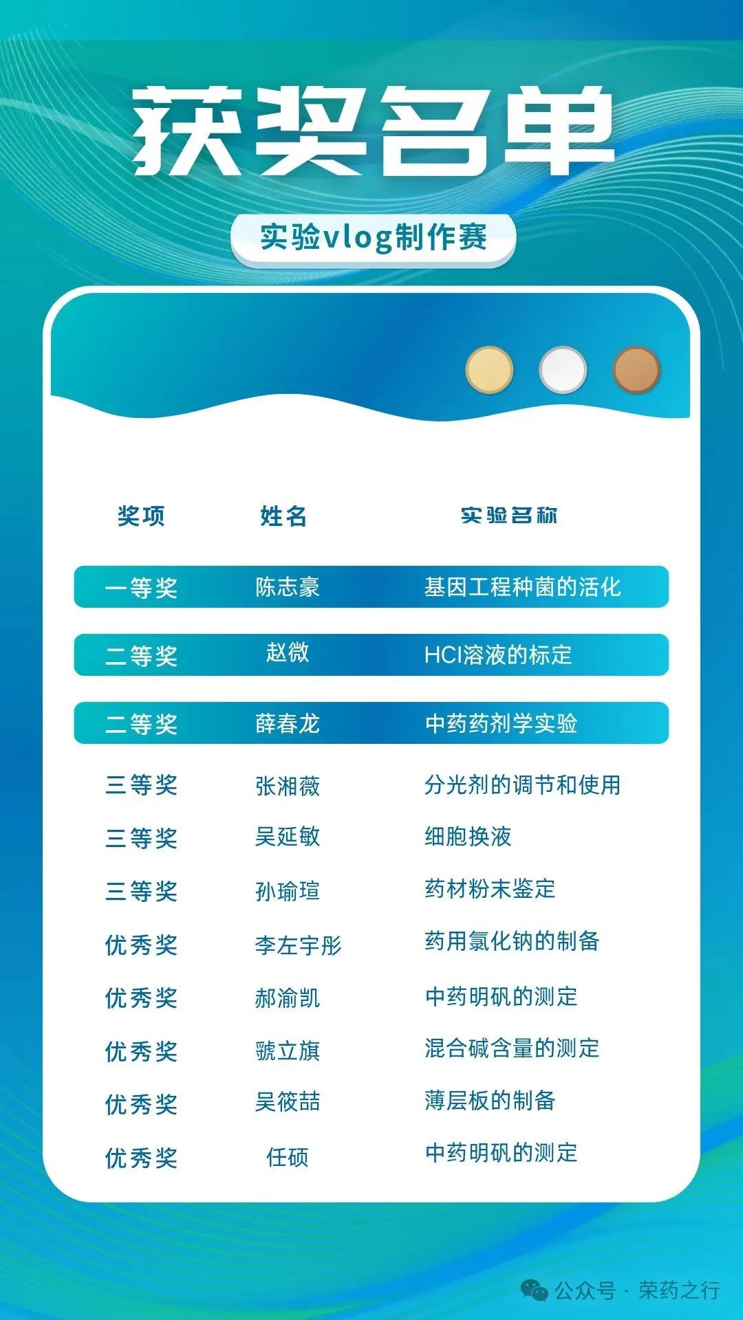 经过对参赛作品在实验操作规范性、内容阐述清晰度,视频制作质量、创意表现以及整体效果等方面的综合评估,现将最终获奖名单公布如下。此次大赛不仅为同学们提供了一个展示自身对实验理解深度的平台,同时也充分展现了同学们的风采与潜力。希望同学们在今后的学习与实践中,能够继续弘扬科学探索精神,不断在科学道路上取得进步,为科学领域的发展贡献力量。