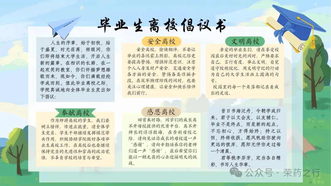 为引导毕业生遵守文明行为规范,pg国际发起了文明离校倡议,期望他们以积极的态度和规范的行为维护校园秩序与环境。