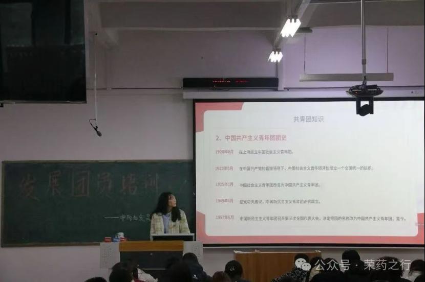 王鑫玥以“我的青春我的团”为主题,概述了共青团的基本知识并带领同学们共同朗读了入团誓词,对入团的基本要求进行讲解,同时对团员管理细则进行介绍,帮助新发展团员明确自身义务、规范自身行为。她通过介绍五四运动讲述五四青年节的由来和由此产生的五四精神。她呼吁,新发展团员青年应在学习和生活方面积极弘扬五四精神,深刻领悟五四精神的内核。