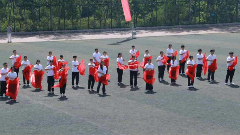 红扇在手,烈火燎原。表演者用整齐划一的红扇,成为舞动的音符,谱写着青春的韵律。