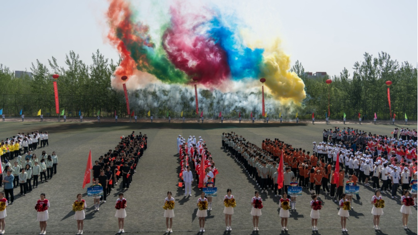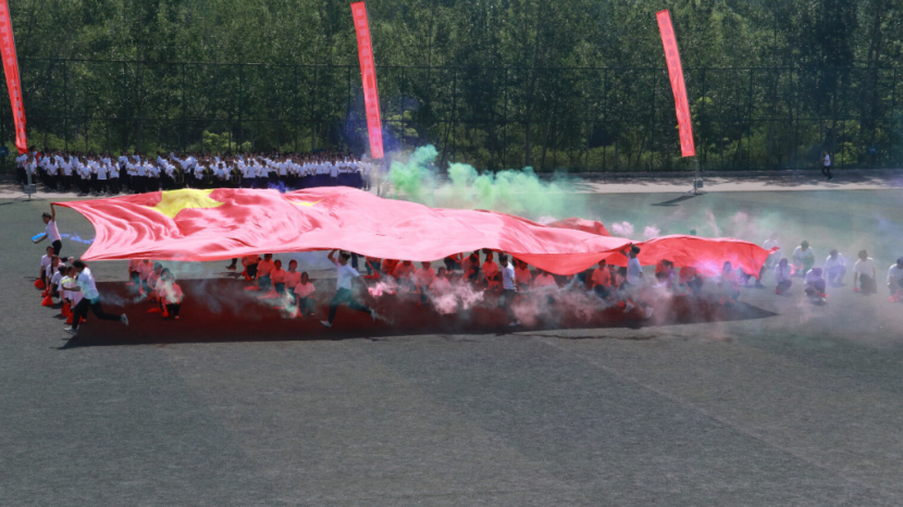 红旗飘动,我们当有恰同学少年,风华正茂之意气。烟雾四起,少年应有指点江山,激扬文字之担当。红旗舞动,光影交错,祖国似朝阳,光芒万丈!