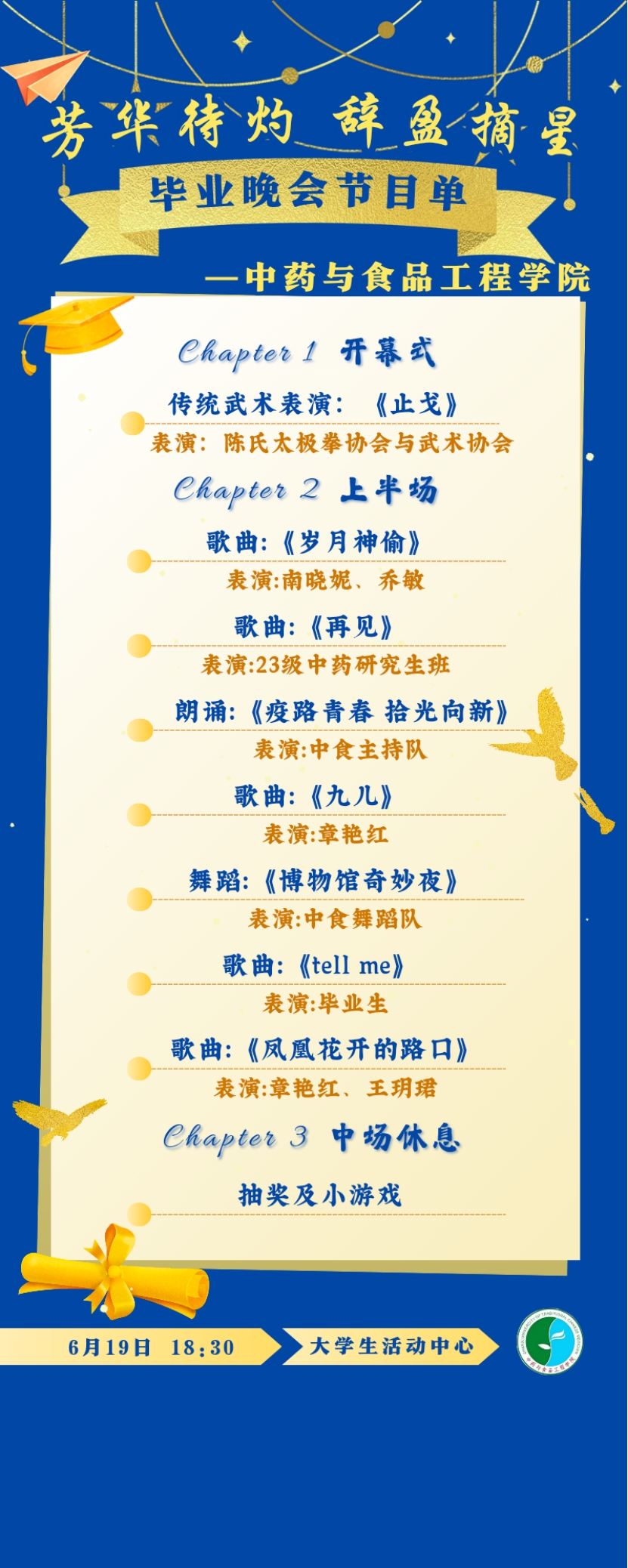 四年光阴,从本草典籍的墨香中走来,在实验室的光影里成长,于操场的落日下奔跑…… pg国际电子网站pg国际电子网站 2025 届毕业生即将踏上新征程。为致敬这段满载药香与热血的青春,学院将于2025年6月19日举办 “辞盈摘星,芳华待灼” 毕业生主题晚会 ,用舞台复刻校园时光,以歌舞传递岐黄情深。