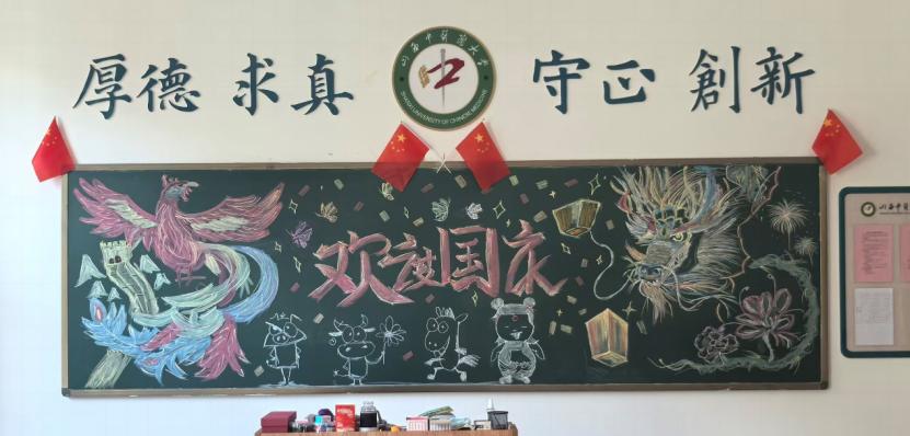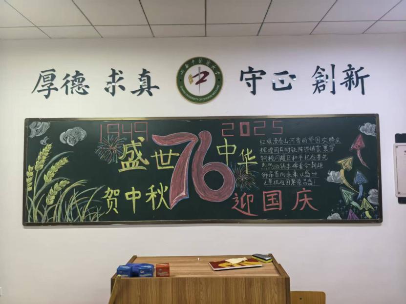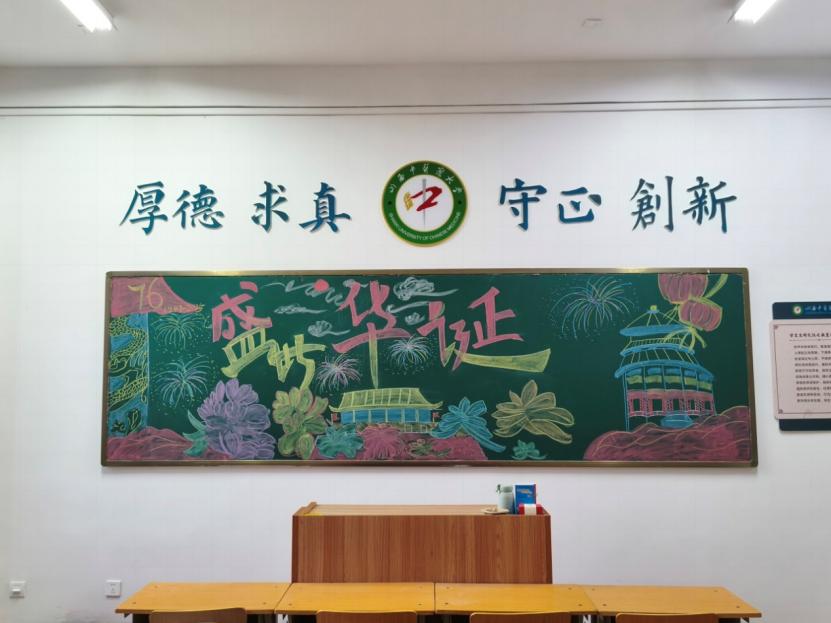 2025级全体班级举行了教室文化布置活动。各班级从版式设计到内容填充,全程分工协作、集思广益。新生们以笔为媒、以画为语,在教室的黑板上用独特方式为祖国母亲献上祝福。此次爱国主题黑板报设计活动,不仅为新生提供了展示自我、交流互动的平台,更以黑板报创作的方式,让爱国主义精神在新生们的心中落地生根。