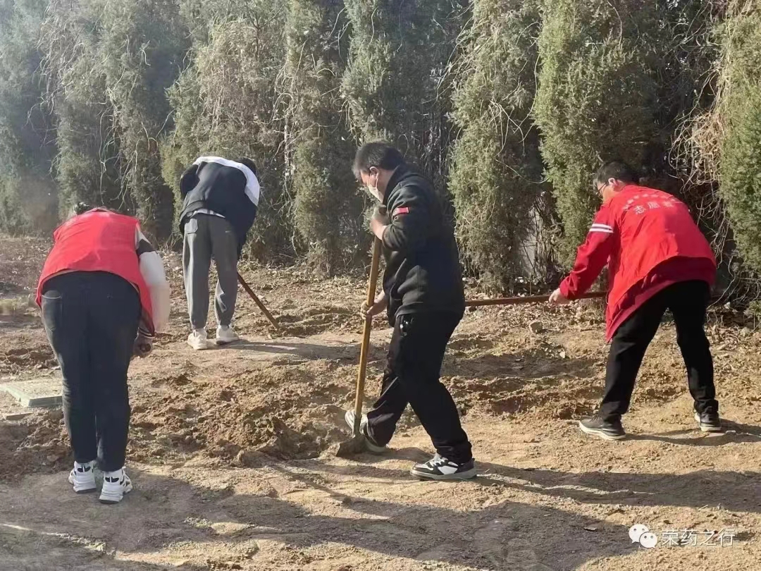 暖风和畅,万物更迭始。一道道红色身影迎着和煦微风在药园中劳作,阳光不燥,身影被拉的越来越长,新的生机被播撒在土地上,期待着来日破土发芽,成长为济世救人的草药。雷锋精神穿越时空,感召着新时代的青年们投入志愿服务。