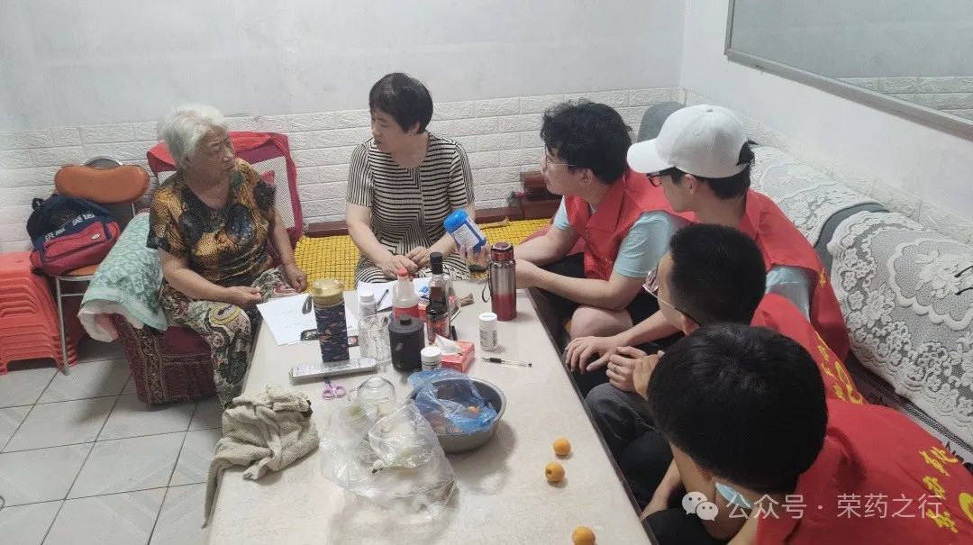 团队成员们走进群众,认真倾听他们的故事,了解他们的生活需求和健康状况。用简单明了的语言为社区居民宣讲合理用药的重要性,并为居民宣传日常食物中相生相克的常识。其中一位住户是王奶奶家,王奶奶是一位退休教师,年事已高,行动不便。她的子女都在外地工作,无法常伴左右。实践团队成员们为王奶奶送去了轮椅和日常药品,并帮助她打扫了房间。在陪伴王奶奶的过程中,大家聆听了她年轻时的故事,感受到了她对教育的热爱和对生活的执着。王奶奶也对团队成员们表示了深深的感谢,她说:“你们就像我的孙子孙女一样,让我感到很温暖。”