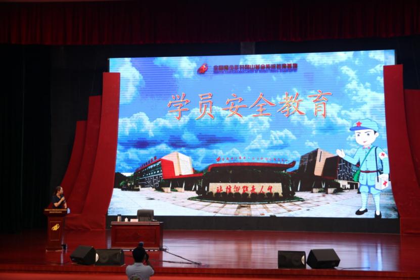 团队风采展示环节,我们用一场融合红色基因与专业特色的表演,诠释这份"协同之力"。《强军战歌》的激昂旋律响起时,我们列队上场,歌声里藏着对前辈的致敬,也透着青年的锐气。最让大家驻足的是我们的班旗——黑白勾勒的山峦是井冈山的剪影,沉甸甸的麦穗象征工农群众的坚实根基,旁边几株草药尤其醒目:"这藏着军民鱼水情的温暖;当年红军用草药救治伤员,如今我们要让中医药在新时代发光发热,就如我们口号中“草木承红韵,药香续井冈——用道地药材,讲百年风云!”。