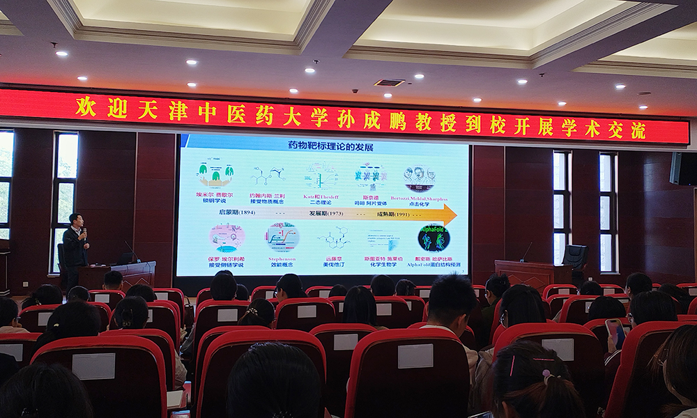 9月24日上午,pg国际电子网站邀请天津中医药大学博士生导师、天津市杰青、天津市青年科技人才、辽宁省青年拔尖人才孙成鹏教授以“复合式靶标垂钓技术体系构建与中药作用靶标发现”为题进行了学术交流。pg国际电子网站李会芳教授主持,学院教师、研究生共120余人参会。