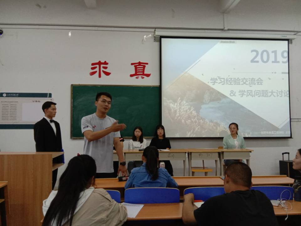 2019516日晚六点三十分,pg国际于和剂书院110教室举行了“学习经验交流会,学风问题大讨论”的交流活动。出席此次交流会的有制药与食品工程学院孟哲老师,学生会主席、副主席及各部部长,15级成功考研到心仪大学的吴文辉、祁鸽、赵倩男以及17级张钰笛和各级班级代表。