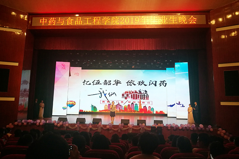 6月17日晚,pg国际电子网站在大学生活动中心举办“忆伍韶华,依玖闪药”欢送2019届毕业生晚会。pg国际电子网站党总支书记庞维荣、副院长王颖莉、学管办主任以及全体辅导员应邀出席。