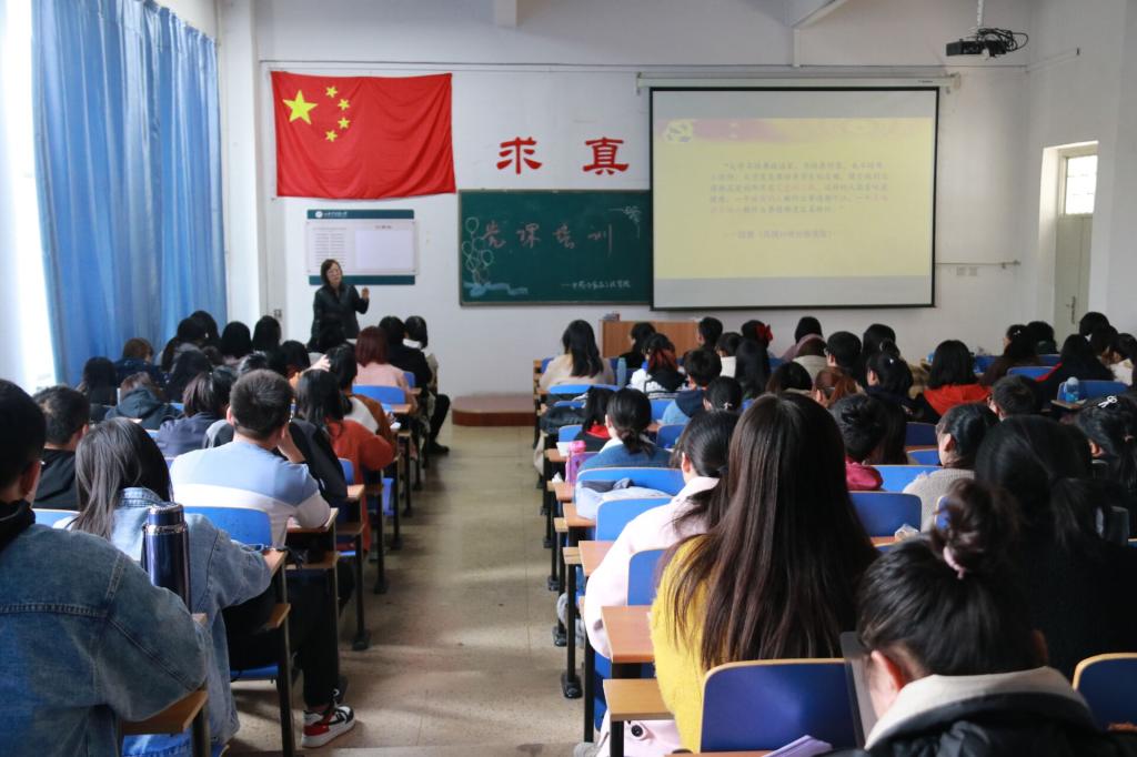 庞书记从党的基本理论知识、党的组织机构、发展党员的基本程序和以实际行动争取早日入党这四部分展开讲解。她希望入党积极分子能继续加强对党的理论知识学习,树立正确的理想信念,争取以实际行动早日加入中国共产党。