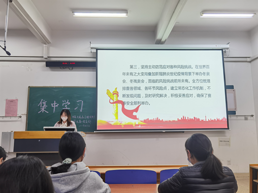 pg国际电子网站学生一支部于4月15日在和剂书院甲座220教室开展集中学习,学习习近平总书记在北京冬奥会、冬残奥会总结表彰大会上的重要讲话精神。孙雪婷同志主讲,崔晓琪同志主持。