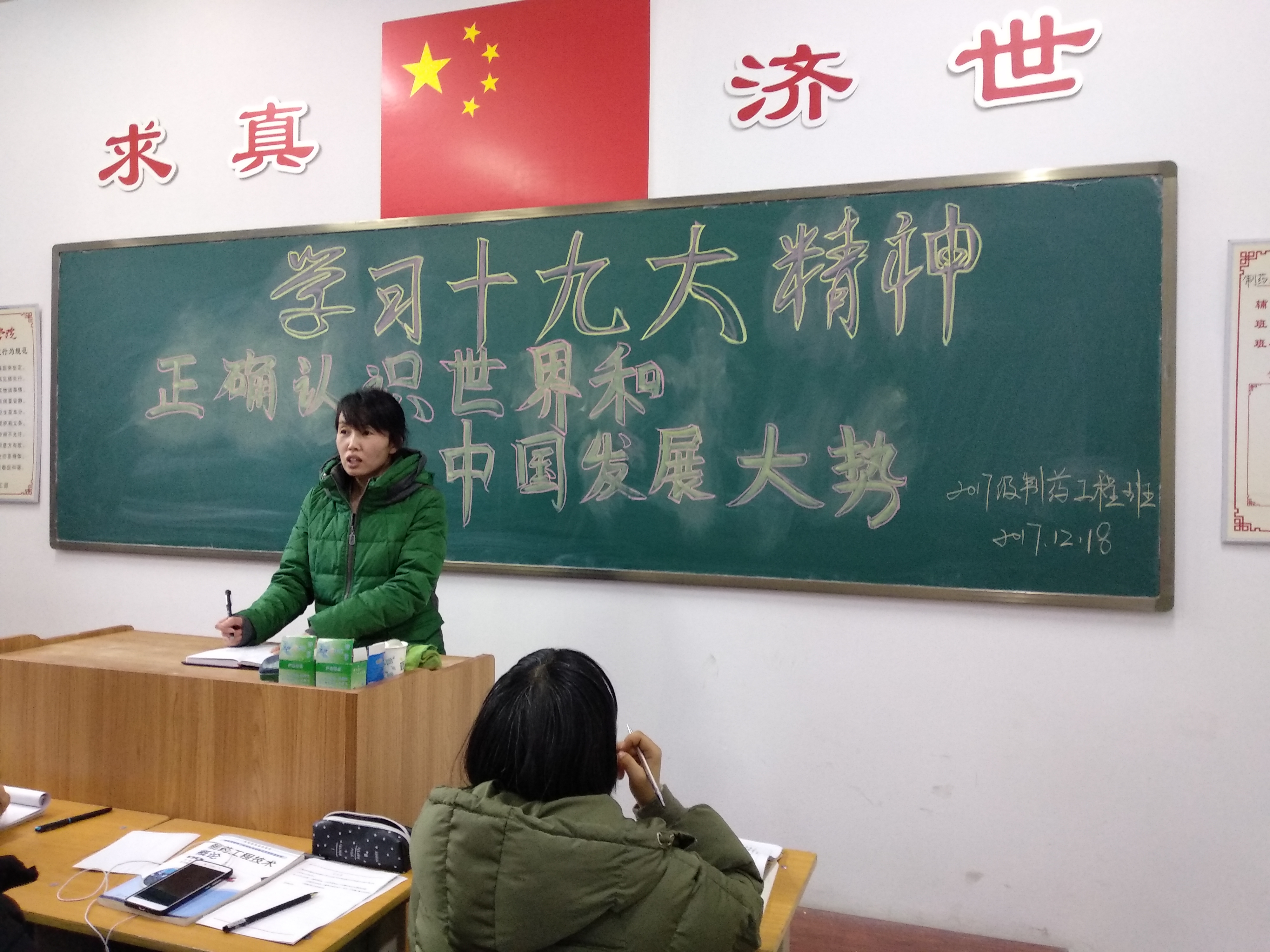 为了深入学习贯彻党的十九大精神,2017年12月18日,在和剂书院甲座205教室,17制药工程全体学生和毛文英老师,开展了以学习党的十九大精神为主题的团日活动。