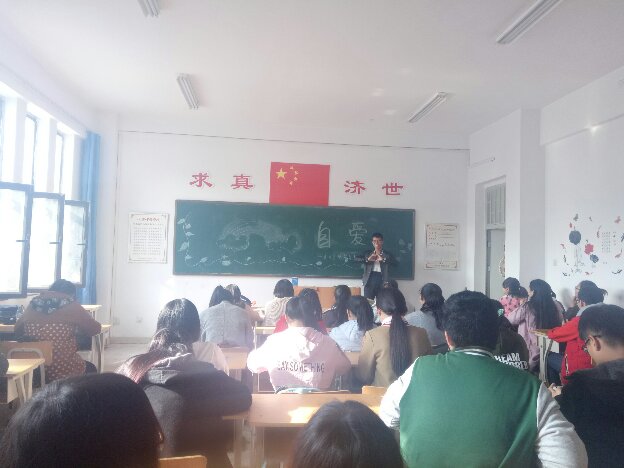 16级食品科学与工程一班全体同学于2017年11月8日下午16点整在和剂书院甲座305教室开展以“自爱”为主题的心理活动,旨在让同学们了解自爱的含义以及重要性。知道我们需要对自己和别人负责任,自爱的终极目的不只是为自己,也是为身边的人,为社会和地球。此次活动由李鹏霞同学主持。