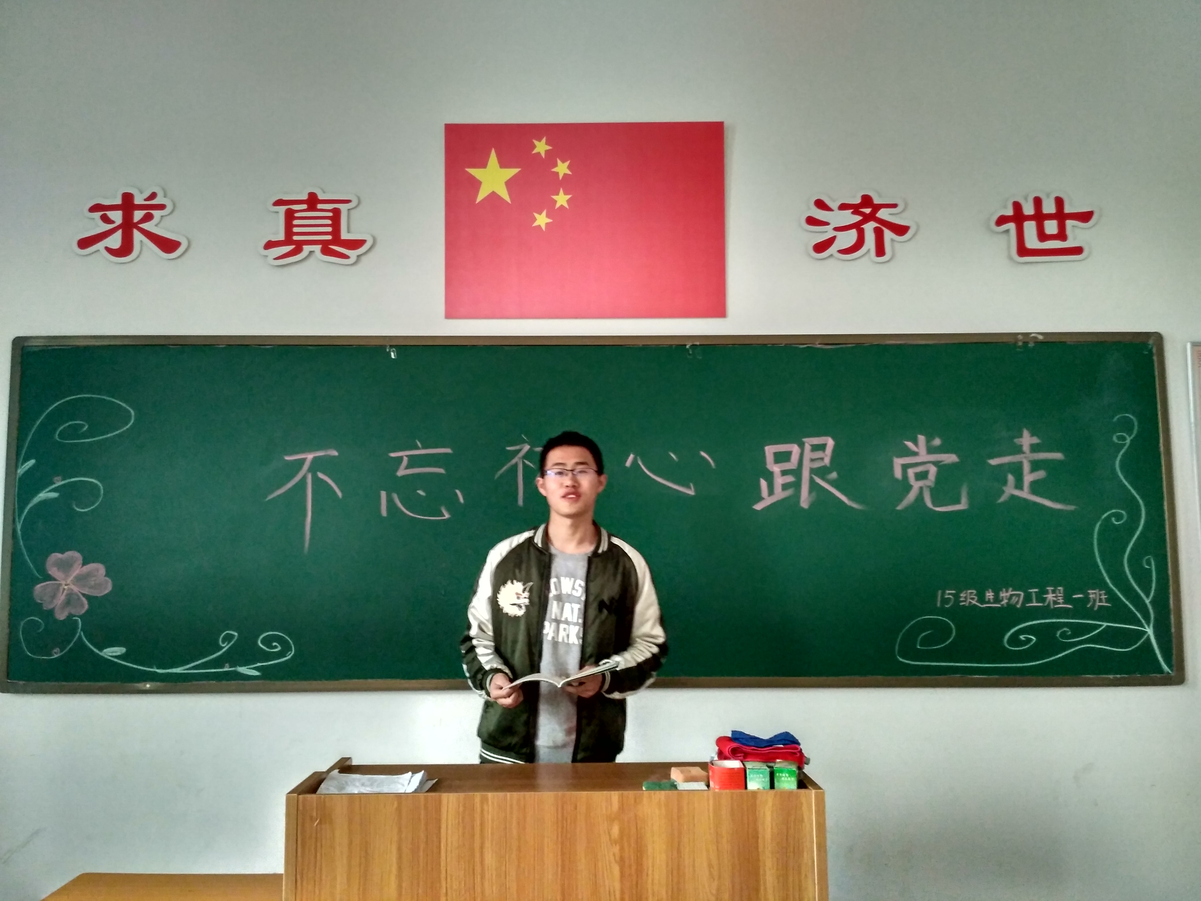 2017年4月22日2015级生物工程一班全体在仁爱书院106参加不忘初心跟党走团日活动。此次活动目的是引导青年深刻了解我们党治国理政的卓越能力和非凡成就,更好地培养广大青年对党的信心和信赖。