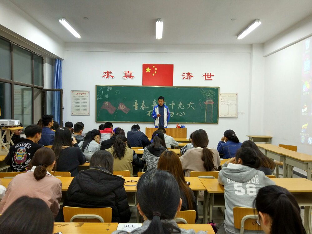 15级食品科学与工程三班于2017年4月17日晚在仁爱书院411教室召开“喜迎十九大,不忘初心跟党走”主题团日活动。旨在强调要深入贯彻落实以习近平同志为核心的党中央各项决策部署,牢固树立“四个意识”。使同学们深入认识十九大会议的意义。
