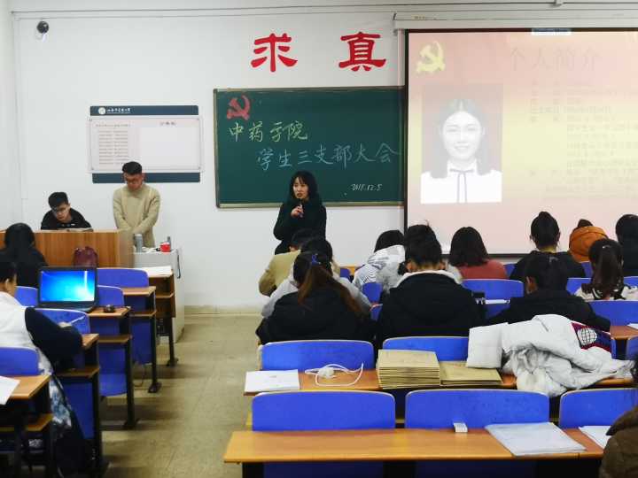 pg国际于2018年12月5日晚6点在和剂书院甲座210教室召开中药学院学生三支部大会。出席本次大会的有制药与食品工程学院学管办主任毛文英老师、中药学院学生三支部学生党员以及预备党员。此次大会旨在对预备党员发展为正式党员进行表决。