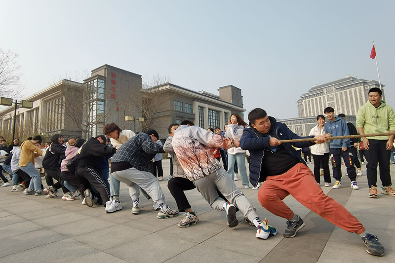 11月16日中午,pg国际电子网站“师生联谊拔河比赛”在傅山广场举行。学院党委书记庞维荣出席,分团委各位老师及2018级至2020级全体学生参加。
