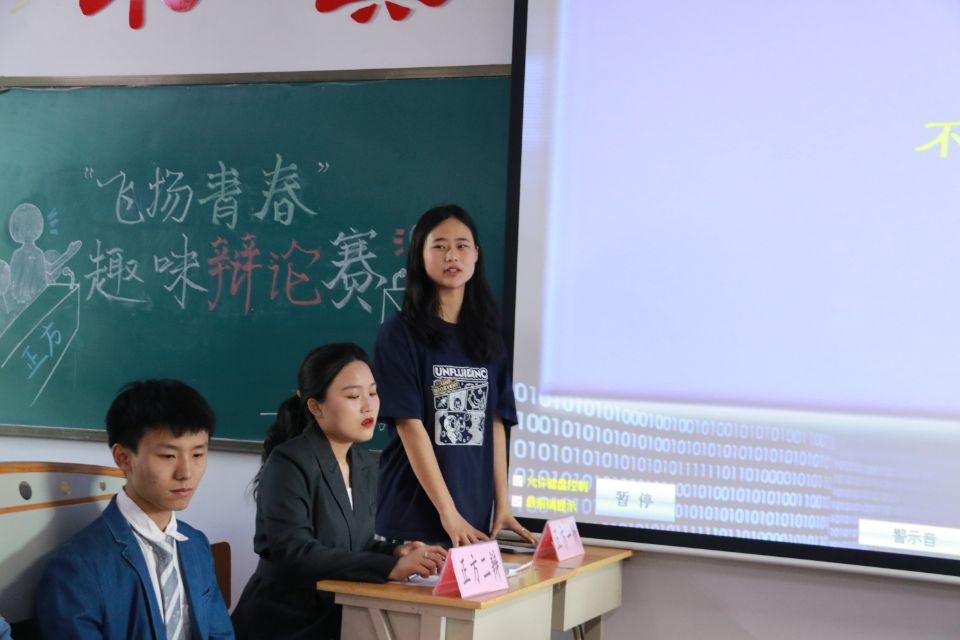 为发扬忧国忧民,热爱祖国,积极创新的五四青年精神,pg国际电子网站于2021年5月26日在和剂甲座309举办“飞扬青春”趣味辩论赛。参与本次辩论赛的嘉宾有党委副书记梁峰岗,分团委书记毛文英,辅导员老师孟喆、韩艺。本次辩论的对辩双方为不想减肥对不队与不队两支队伍,共有八位辩手。