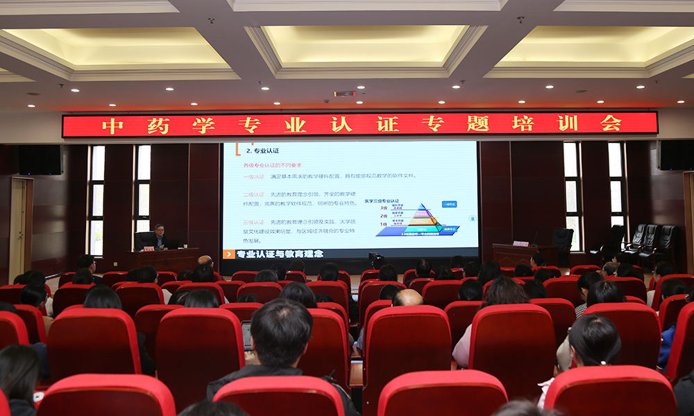 4月8日下午,教育部高等学校中药学类专业教学指导委员会秘书长、黑龙江中医药大学李永吉教授应邀来pg国际开展关于《中药学专业认证与专业建设》专题培训会。副校长郭蕾出席,pg国际电子网站全体教职工及学生代表、学校相关职能部门及其他二级教学单位课程负责人、学校督导组主任参加培训会。